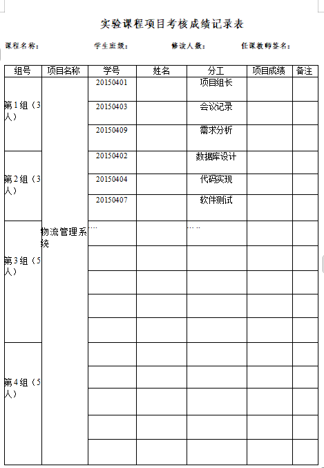 1.选择分组实验的课程,要合理给出各小组成员每次实验成绩,小组成员分工不同,成绩不同,避免同一小组所有成员的实验成绩出现雷同的情况。