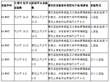 (二)教学大纲中需明确实验项目数、实验项目提交材料类型、实验开出项目数(具体要求见下表)。