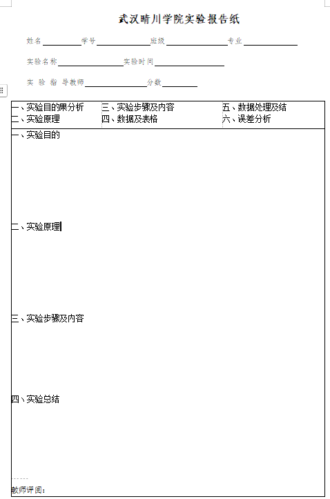 (二)电子版实验报告撰写统一参照纸质版实验报告内容,书写完整的实验报告最终的提交格式需为PDF版。实验数据应实事求是,严禁弄虚作假和抄袭。