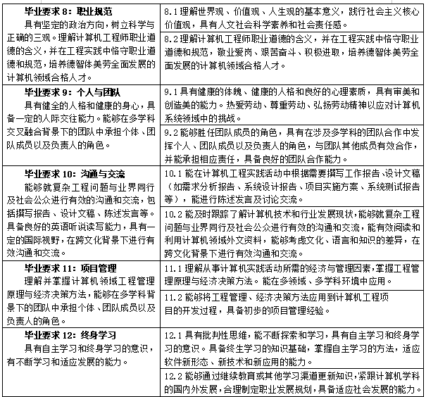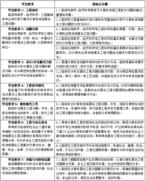 本专业毕业要求对培养目标的支撑关系如下表所示: