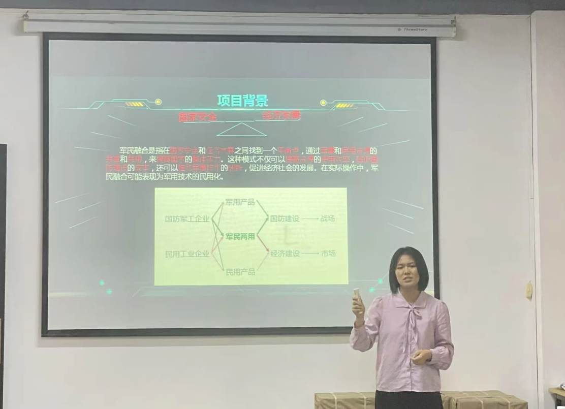 杨雨辰组—军民融合背景下的平台优化和管理。他们通过国家安全和经济发展之间找到一个平衡点,使军事和民用资源的共享,去提升国家的整体实力。他们通过调查问卷,市场优势和财务分析,了解对手的战略和业务模式,提升自己的服务质量,及时研究和引入新兴技术。