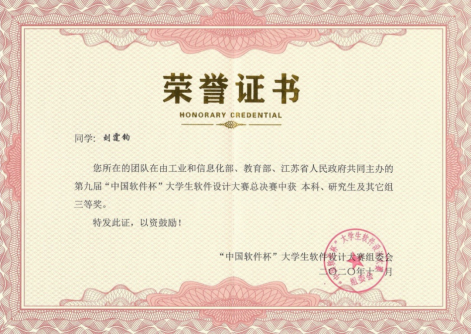 近日,第九届“中国软件杯”大学生软件设计大赛决赛落下帷幕,龙8-long8(中国)唯一官方网站龙8-long8(中国)唯一官方网站参赛队“T.C”团队荣获全国A组总决赛三等奖。