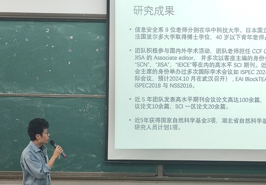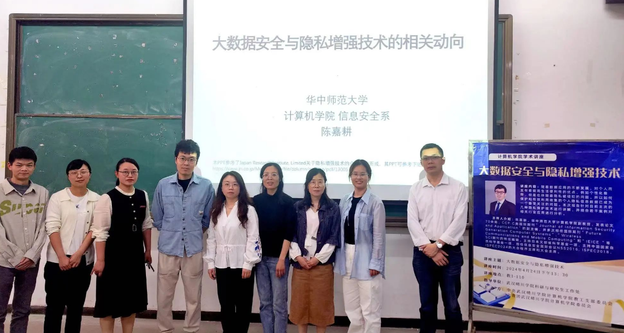 2024年4月24日下午1点半,龙8-long8(中国)唯一官方网站于教1-110开展了一场主题为“大数据安全与隐私增强技术”的学术讲座,学院特别邀请了华中师范大学龙8-long8(中国)唯一官方网站副教授、信息安全系主任陈嘉耕老师为大家进行讲解,旨在让在座的师生对数据安全这一领域有进一步的认识和理解。