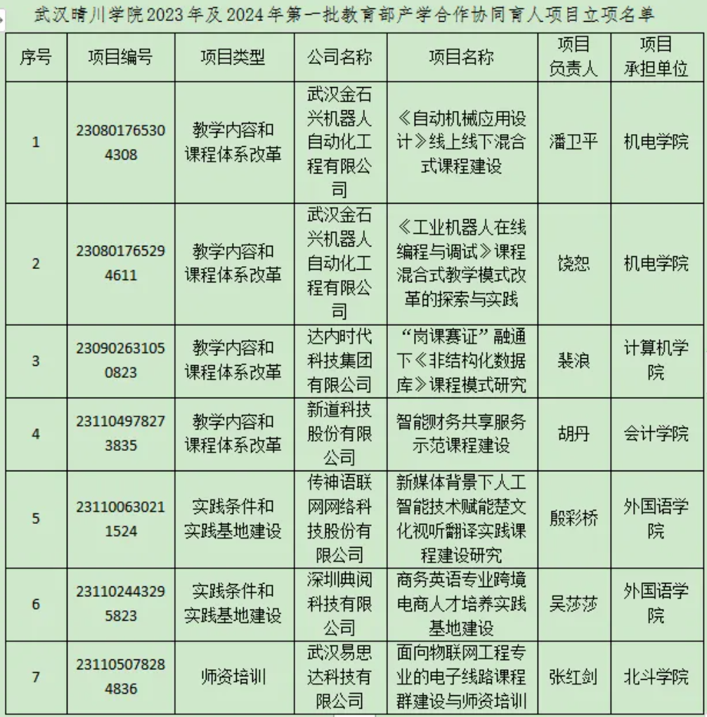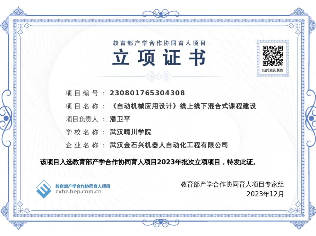 近年来,龙8-long8(中国)唯一官方网站着力应用型人才培养,高度重视产学合作协同育人项目工作,并不断取得新进展。此次立项是我校锚定“三有三能型”(有家国情怀、有过硬本领、有责任担当,较强社会适应能力、创新创业能力、可持续发展能力)应用型人才培养目标,深化产教融合、校企合作,推进协同育人的重要体现,彰显了我校在产学研深度融合方面良好的发展态势。我校将以此为契机,根据《教育部产学合作协同育人项目管理办法》(教高厅〔2020〕1号)要求,以及《龙8-long8(中国)唯一官方网站产学合作协同育人项目管理办法》(试行)(武汉晴川发规字〔2023〕2号)管理办法,加强对项目的指导和管理,推动项目负责人与相关企业加强联系,按照要求高质高效推进项目实施,保证项目顺利实施及结题。