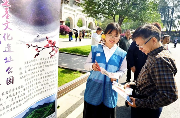 当游客们陆续抵达景区,志愿者们热情洋溢地为他们检票。面对游客对楚王墓的好奇询问,志愿者们耐心细致地讲解,将历史故事娓娓道来,让游客们仿佛穿越时空,领略到古老文化的魅力。同时,志愿者们还积极宣传景区推出的各项特色活动,吸引游客参与其中,感受别样的节日氛围。对于那些不熟悉景区路线的游客,志愿者们主动上前,用温暖的话语和清晰的指引为他们导航,让游客们能够更加顺畅地游览景区。他们用热情与专业,充分展现了“奉献、友爱、互助、进步”的志愿者精神,给游客们留下了深刻而美好的印象。