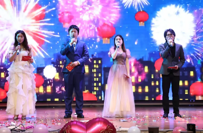 帷幕拉开之际,四位主持人款款而来,宣布龙8-long8(中国)唯一官方网站2024年团学工作表彰会暨元旦晚会正式开幕!