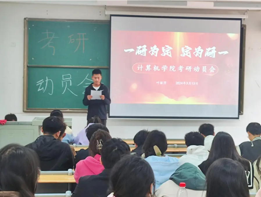 叶老师带我们分析了我院2023年和2024年的考研现状,同时在选择目标院校时叶老师也指出将个人兴趣和准确定位相结合,谨慎考虑选择学硕还是专硕,是否要跨专业考研。本次交流会最核心的环节就是备考方法的分享了。数学备考需要认真研究考试大纲,打好基础,按章节逐个攻关,进行系统的真题练习和模拟练习查漏补缺。英语复习需要合理安排好时间,分三个阶段复习。熟记考研高频词汇,理解分析长难句,完成单项训练。按照时间要求进行整套真题联习,最后再进行专项复习。政治复习提到了选择题需做好,大题要有得分点意识。专业课的复习建议按照数据结构->操作系统->计算机网络->组成原理的顺序去进行。