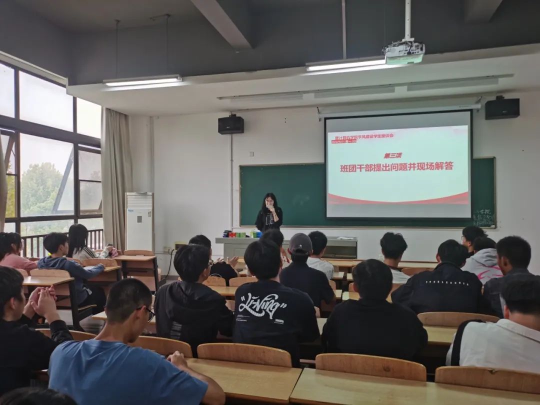 会议第三项班团干部提出问题并现场解答。首先由人工智能2301班的学委、计科2303班的团支书代表提出自己在班级管理中的问题和疑惑,例如:同学老是喜欢坐后排、上课坐座位不聚集等。针对上述问题软工2202的班团干部和冉陈阳同学结合自己的经验作出回答,他们提议可以采取最后两排不能坐,慢慢促进他们往前坐,降低后排率,寝室之间可以坐一起等方法以降低后排率和座位不密集现象。其次大数据2101班团支书杨晨分享了自己作为班长在班级管理上的一些方法,她提到在班级管理方面,班委之间的协调性、团结性对于班级管理还是非常重要,我们必须要明确各个班委的职责,应该做什么,且班委之间要互相交流、互相借鉴、取长补短;在同学方面采取偏人性化管理,会多问同学间的想法,采取一个合理的方案来满足同学的要求,给予同学最大便捷;在班级任务方面充分发挥班委的个人能力,会给每个班委分配任务,协调各个班委作用,这样不仅办事效率高而且对班委的锻炼效果非常显著。最后大家一致认为,在班级学风建设中,应注重加强班级的凝聚力,使班级同学团结起来,加强交流,在学习的过程中互帮互助,共同努力,共同进步,把学风建设量化到每天的学习生活中,让学风优良、学习氛围浓郁成为学院的良好传统。