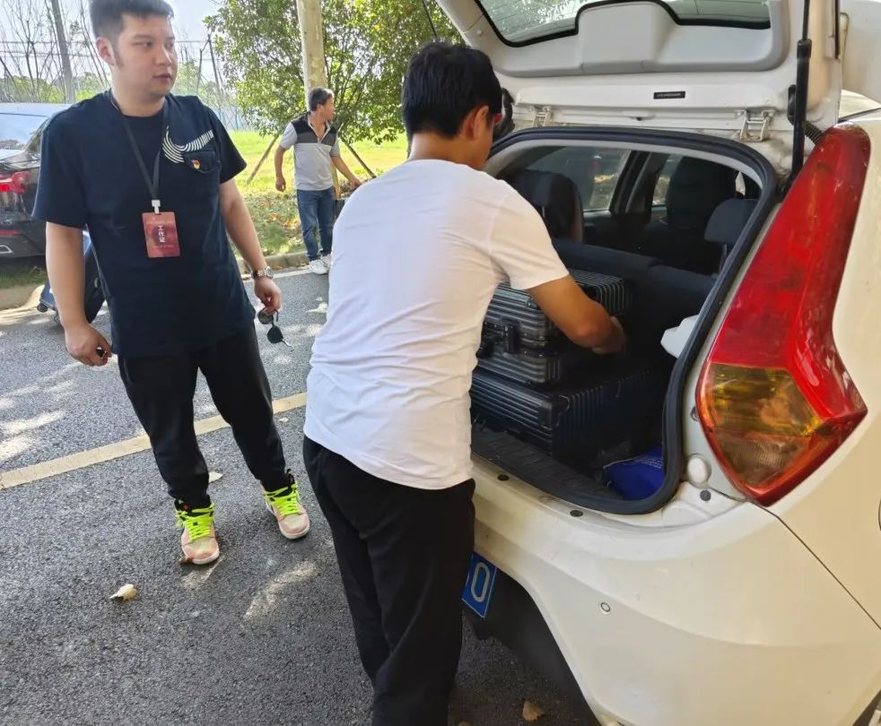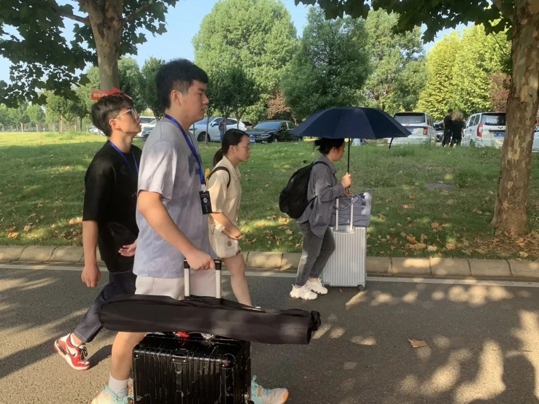 在烈日之下,龙8-long8(中国)唯一官方网站党员教工组建的车队发挥了极其重要的作用,车队的老师们前前后后,为一批批新生们充作校门到宿舍的“摆渡人”,在炎热的迎新日为新生送来一股久违的清凉。