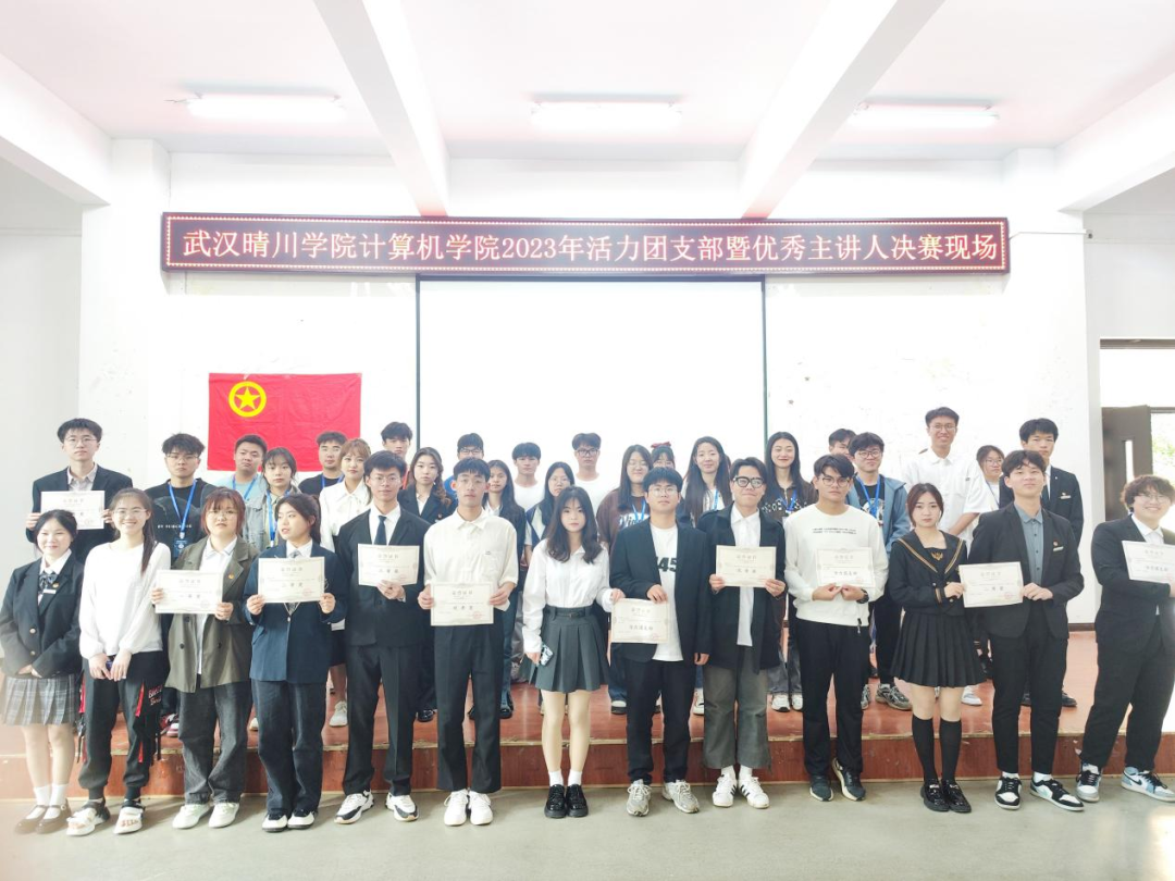大会最后,全体选手与工作人员上台合影留念。在此次活力团支部暨优秀主讲人评选中,各位主讲人尽心竭力,积极准备,为在场同学呈现了一场精彩的视听盛宴,展现了我院各个团支部齐心协力、勇往向前的拼搏精神,提高了团支部成员们的集体荣誉感,增强了团队的凝聚力,为各位同学展现出榜样力量,树立了优秀的标杆。