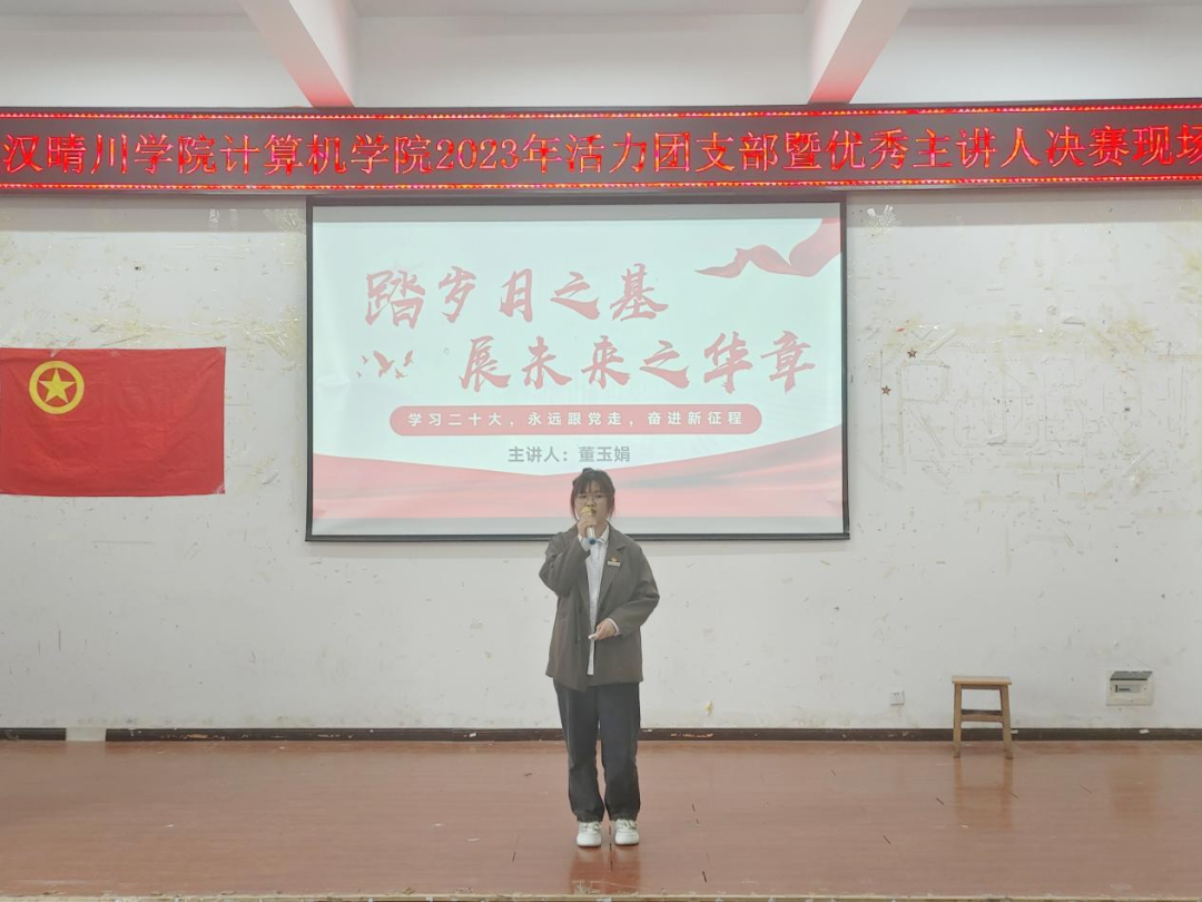 第四位主讲人是来自计科2206班的章文涛同学,他先讲解了中国共产党的中心任务,为此号召新青年更需要坚定理想信念,深入贯彻党的二十大态度,以优异的成绩献给党。