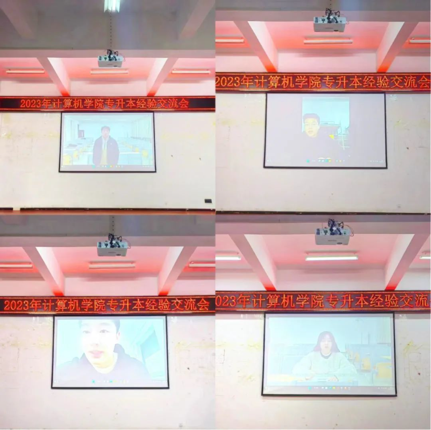 活动首先邀请李攀老师做升本的动员发言,李攀老师表示,升本对将来的就业和发展来说都是一条很好的道路,希望在座的同学们认真考虑自己后续的职业发展,认真聆听学院邀请的优秀学子的经验分享,以此为契机,坚定升本信念,努力拼搏。随后,大屏幕上依次播放了四位专升本学长学姐录制的分享视频,四位学长学姐们在视频中分享了自己的升本经历,讲述了自己在升本路上发生的事情以及所遇到的困难,并且说明了自己解决其困难的方法,且在视频最后,四位升本“前辈”,都为在做的专科生代表们送上了祝福,鼓励他们努力拼搏,早日上岸。