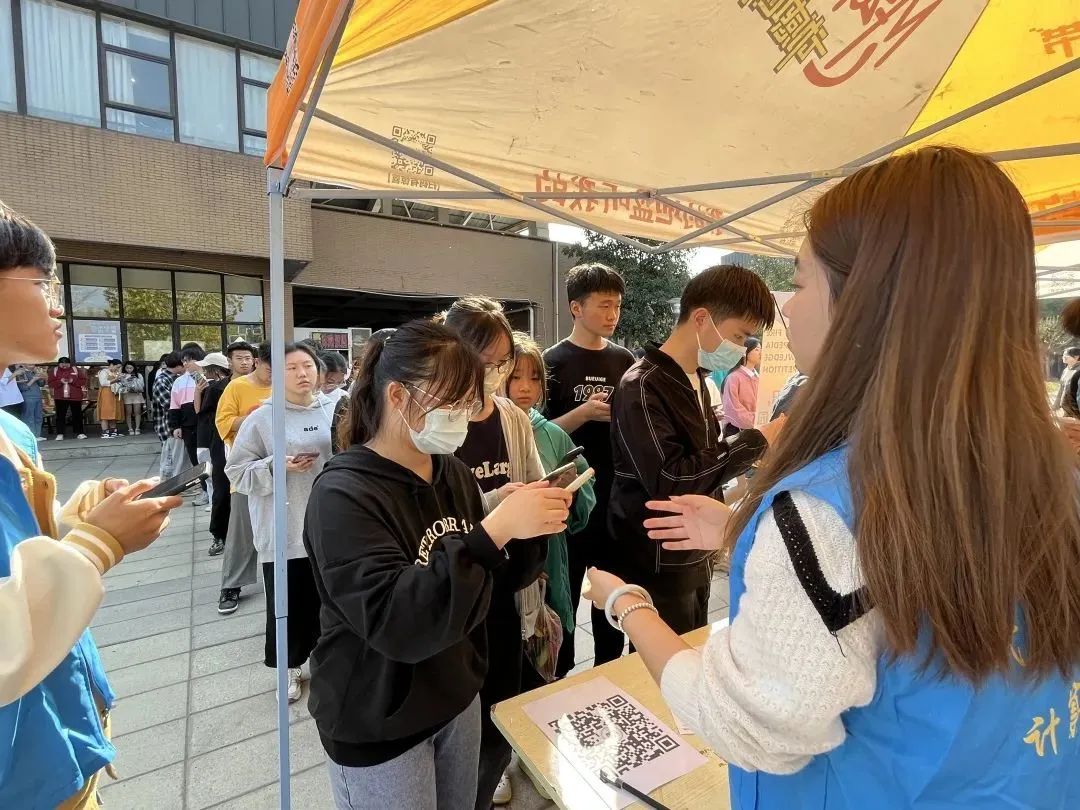 青年志愿者们耐心的帮助来场同学进行活动签到,并做活动讲解,来场同学可以通过手机转发志愿服务站所提供的消防安全文案,帮助普及校园消防安全知识,带动更多人参与宣传活动。