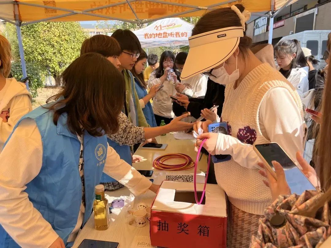 本次活动设置了在线答题、套圈、抽奖等趣味活动吸引同学参与,通过现场作答手机上的消防知识问答,完成作答的同学,可获得抽奖机会,随机获得团总支准备的小礼品,也可以通过自己进行套圈游戏,来选取自己心仪的礼物。
