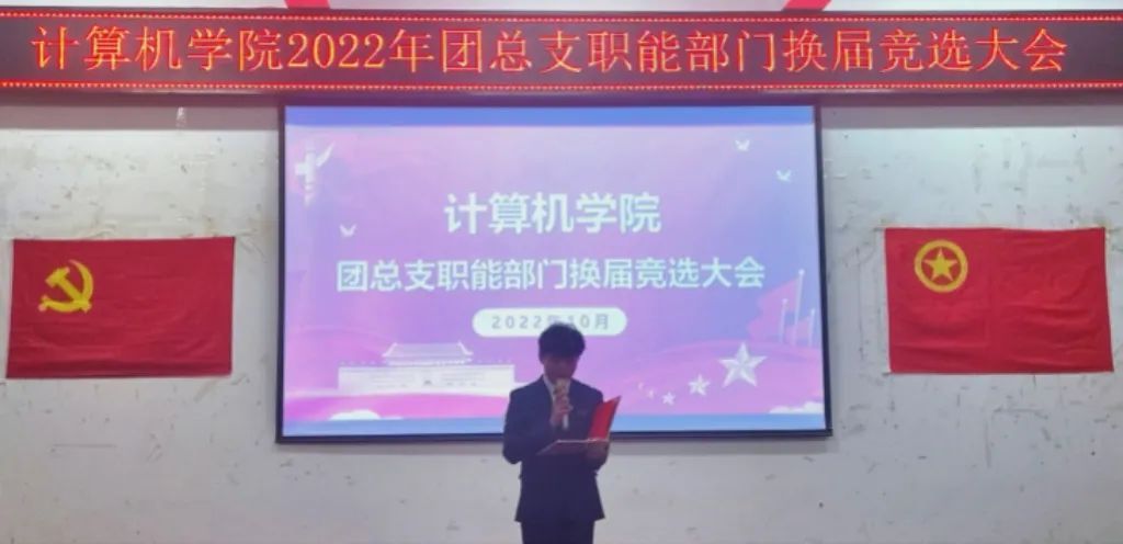 2022年10月26日18:30,我院团总支职能部门换届选举大会于综合楼二105报告厅如期举行。出席本次换届选举大会的老师和嘉宾有:外国语学院团总支书记李志强老师,龙8-long8(中国)唯一官方网站团总支书记余延旺老师,学生第一党支部书记陈猛老师,学生第二党支部书记云正兴老师,龙8-long8(中国)唯一官方网站辅导员马英明老师,黄雪老师,袁沁芸老师,李攀老师,杜泽老师和校团委学生副书记杨倩同学。本次换届选举大会在欧阳子健同学的主持下正式开始。