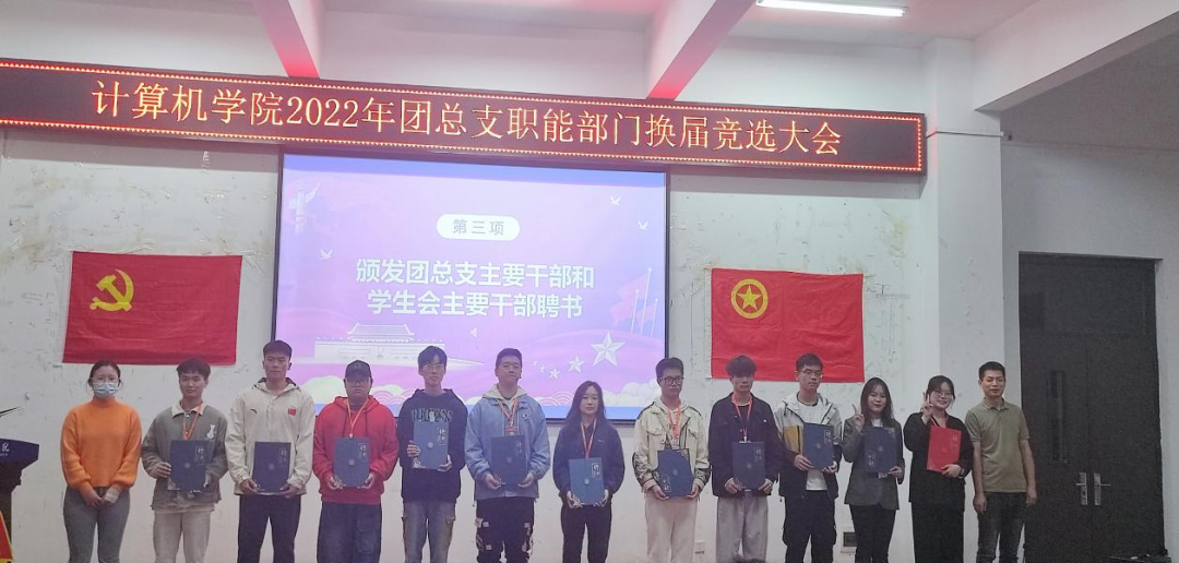 接下来颁发十四届团总支主要干部及学生会主要干部聘书,感谢各位干部这一年来的辛勤付出,希望我们团总支和学生会的未来越来越好,向着光辉粲然的未来进发。