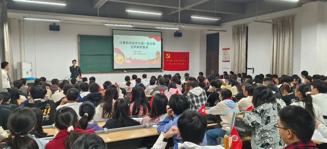 在讲授坚定理想信念时,陈猛老师从不忘初心、积极主动、忠诚担当和磨砺品质四个点开展论述,指出:“理想信念是共产党员的精神支柱和政治灵魂,这决定了方向与立场,也决定言论和行动。坚决反腐倡廉,是我们党自我革命的鲜明体现。”案例分析这一板块,则是引用廖菁与张桂梅的故事,让我们对清正廉洁有了更深层次的认识。在陈猛老师发言完毕后,三位学生党员代表分别针对此次主题分享自己的学习经验与收获,让学生党员在今后的学习和生活中更加规范自己。