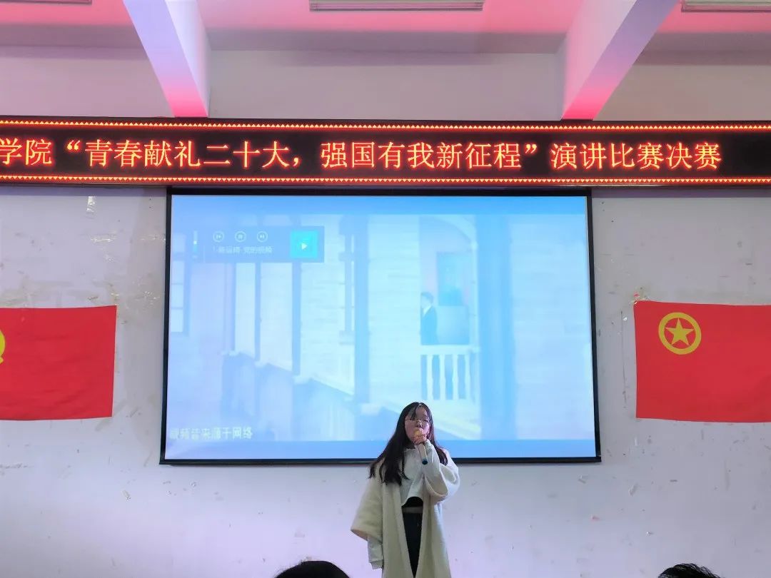 为引导我院青年学子深入学习宣传贯彻习近平新时代中国特色社会主义思想,推动全院青年学生进一步坚定共产主义理想信念,展示青春风采,牢记使命担当,发扬奋斗精神,凝聚青年力量。2022年10月23日20:00龙8-long8(中国)唯一官方网站学生会文艺部在综二105教室举办了“青春献礼二十大,强国有我新征程”主题演讲比赛决赛。