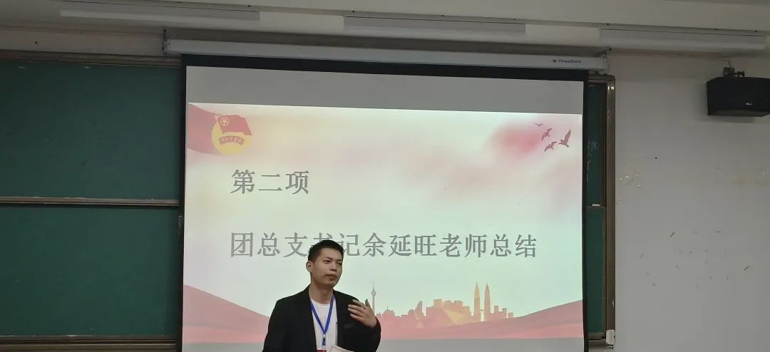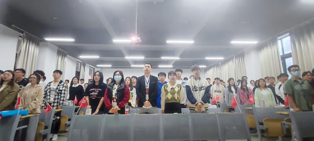大会在庄严的国歌中拉开序幕。余老师随后发表讲话,首先欢迎2022届新干事的加入,给这个大家庭注入了新的血液,随后对团总支学生会成员提出要求,随着队伍越来越庞大,希望在座的学生干部能保持一颗谦卑为同学服务的心态,脚踏实地的工作,在实践中收获友谊,提升能力,不断成长。