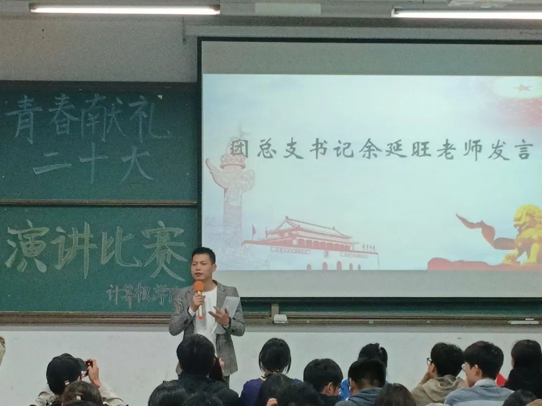 最后,由余延旺老师发言,余老师对大家敢于展现自我的勇气表示赞赏,也对他们的演讲的优点提出表扬,也对选手们的神态、背景音乐,等地方提出了建议,并鼓励他们能继续努力,带着青年的朝气和热血继续书写祖国的篇章。