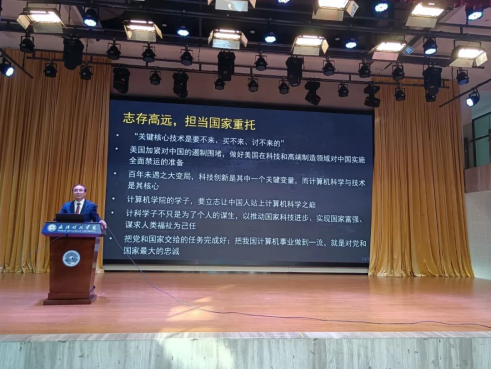 接着从专业学习方面给予学生建议,他提到要聚焦专业,全面发展,不断提升综合素质,当今计算机行业日新月异,技术更迭换代频繁,由于美国的科技和高端制造领域的技术封锁,导致技术突破有着层层困难,龙8-long8(中国)唯一官方网站的学子,要励志让中国人站在计算机科学之巅,在百年未遇之大变局里,推动国家技术创新,科学进步,为中华民族伟大复兴做出不懈努力!他鼓励新生要不怕困难,勇攀科技高峰,“志存高远,担当国家重托”。