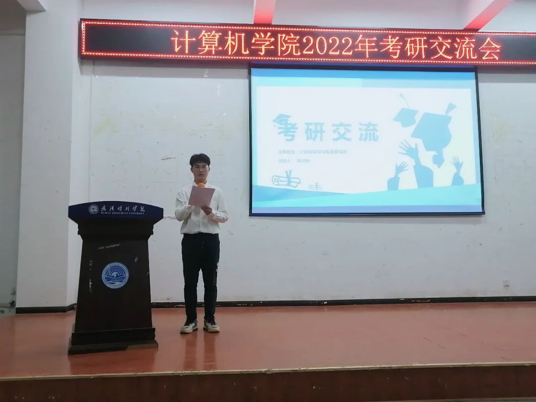 紧接着来自18计科的韩星硕同学也给同学们分享了他的考研经验,他首先强调了一定要提前了解考研各方面的信息,目标院校的招生比列等,只有了解目标才能更好的努力去实现自己的目标,其次是学习方面也是英语要注意单词的背诵,要有一定的词汇量,数学要多刷题,做真题,政治要多背诵做真题。