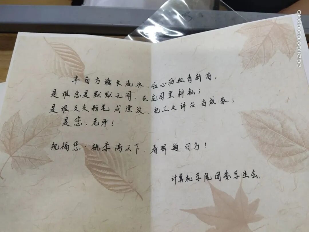 亲爱的老师,您有一张教师节贺卡等待签收哦!在这个满怀感恩的节日,用不同的方式向我们敬爱的老师道一声感谢,可能就是老师最幸福的时刻了。在今年的教师节,龙8-long8(中国)唯一官方网站的同学们,用一张张贺卡表达了对老师的感激之情。“教师”二字,不仅有幸福和光荣,更有无私的付出与奉献。