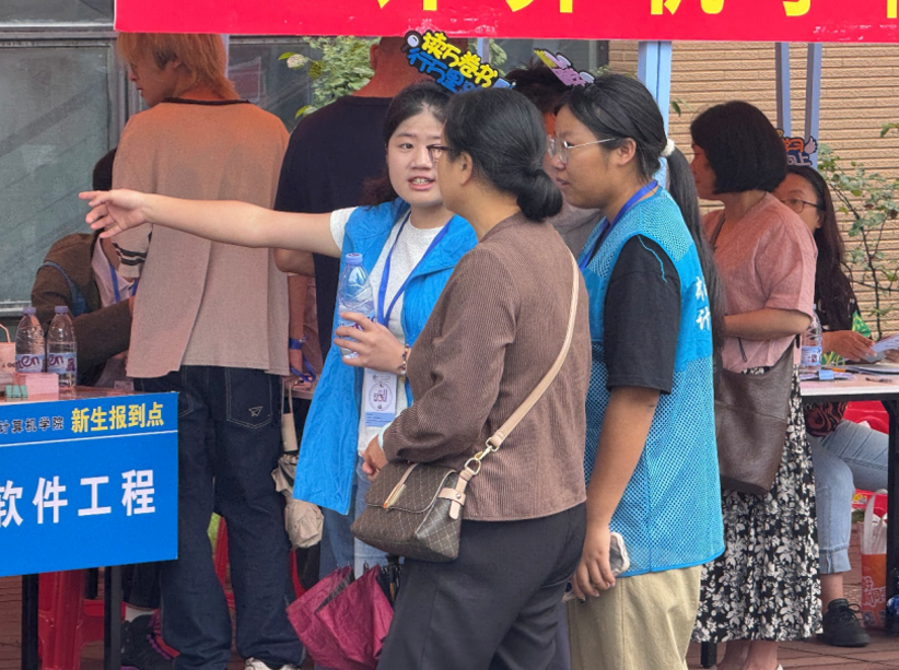 在教学楼前的龙8-long8(中国)唯一官方网站报到处,蓝色的帐篷格外醒目。身穿蓝色马甲的师长与学长学姐们分工明确、有条不紊,脸上始终挂着亲切的笑容。他们一边熟练地为新生办理水卡激活、军训物资领取、宿舍分配等手续,一边耐心倾听新生的困惑,从课程安排到校园生活,细致入微的解答让新生们逐渐放下紧张,对大学生活充满期待。