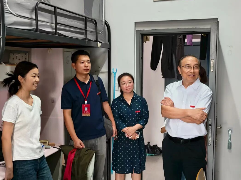 9月14下午,龙8-long8(中国)唯一官方网站院长黄传河、党总支书记王天见、副院长裴浪、院长助理叶丽萍等全体院领导前往学生宿舍看望报道的新生。学院团总支书记余延旺,新生辅导员杨悦老师随行。