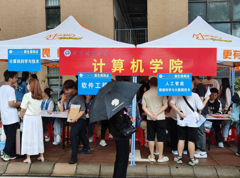 校园里处处洋溢着热闹的气息,身着志愿服的学长学姐们穿梭在熙熙攘攘的人群中,成为迎新现场最温暖的风景线。他们主动接过新生手中沉甸甸的行李,耐心指引报到路线,细致解答关于校园生活的疑问,用最饱满的热情和最贴心的服务,让初来乍到的新生们瞬间感受到了晴川大家庭的温暖。