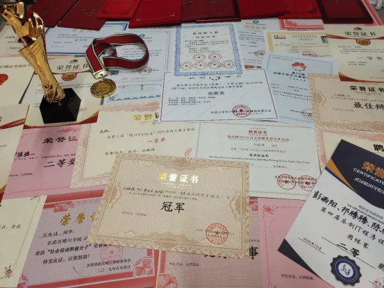 大学生学科竞赛,有人鼓励,也有人反对。祁腾腾的父母属于前者,这也让祁腾腾更加坚定了要在竞赛的路上一直走下去。祁腾腾除了在计算机领域拥有众多奖项外,他在数学和英语学科竞赛、创新创业等众多比赛中也崭露头角,获得的奖项数不胜数。2020年获大学生计算机应用技能大赛国家级二等奖、三等奖,全国大学生数学能力挑战赛、百万同题写作大赛优秀奖,第六届中国国际“互联网+”大学生创新创业大赛铜奖。除此之外,他还获得“晴川Talk秀”大赛一等奖和“乐创IT”计算机素养大赛二等奖等等。