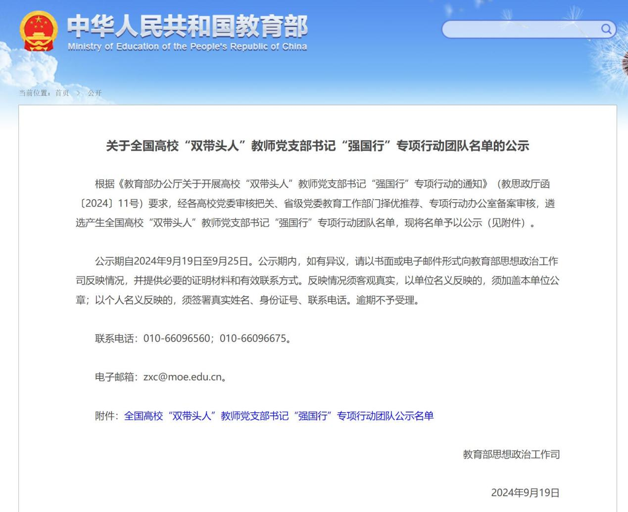 据悉,全国高校“双带头人”教师党支部书记“强国行”专项行动旨在落实立德树人根本任务,深入贯彻落实教育部党组关于高校“双带头人”教师党支部书记(以下简称高校“双带头人”)培育工作的部署要求,充分发挥高校“双带头人”的示范引领作用,引导广大师生在以中国式现代化全面推进强国建设、民族复兴伟业新征程上砥砺新担当,展现新作为。