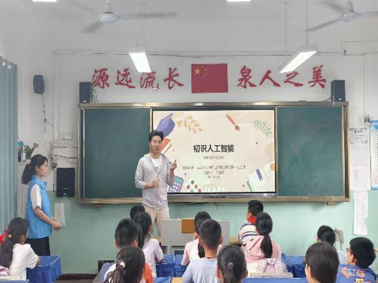 在授课过程中,支部书记陈猛老师先向同学们介绍授课主题,表达对此活动的重视,希望能够让小朋友们学习到科技知识。