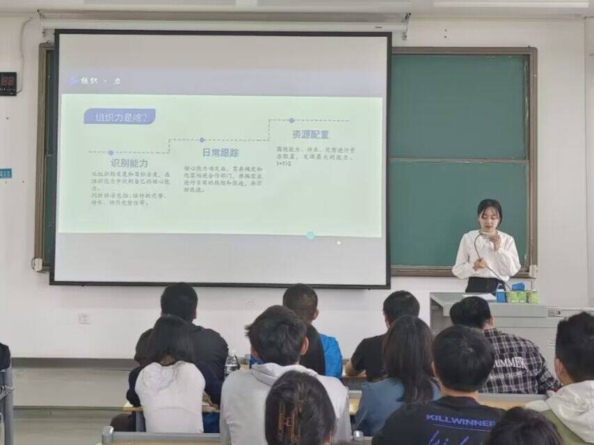 随后,杨倩同学引用了电影《年会不能停》中的“颗粒度对齐”抓手等概念,以此展开如何高效进行管理组织工作的讨论。她在发言中提到:“在思想、学习、工作和生活上要踏实勤奋,不浮于表面,要积极发挥表率作用和主动性,不忘初心,勇于担当,以学生干部的标准严格要求自己,努力服务同学,不断提升自我。”