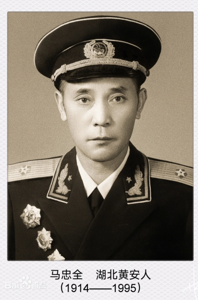 马忠全,原名马忠乾,湖北红安人。1930年投身革命,同年入党,历经土地革命烽火淬炼,从红军连长成长为长征路上的钢铁战士;抗日战争中,他转战太行,屡建战功;解放战争时,随刘邓大军挺进大别山,筑牢革命根基。新中国成立后,他南征剿匪,后投身海军建设,从快艇学校校长到海军副司令,为国防现代化倾尽心血。1955年授少将军衔,两届全国政协委员。他用八十一载春秋,书写了“铁血守家国,赤诚馈桑梓”的壮丽人生,于1995年病逝于北京。1955年,被授予海军少将军衔,荣膺二级八一勋章、二级独立自由勋章、一级解放勋章。1988年,荣膺一级红星功勋荣誉章。1960年2月2日,董必武在海南岛椰庄题诗赞道:“珠崖椰树欲凌霄,屡受台风永不凋,本性坚贞经锻炼,故乡人有此标高”。