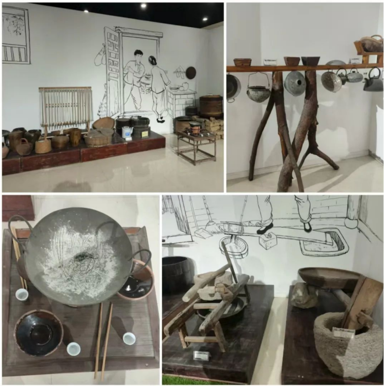 首先映入眼帘的是传统饮食工具。古朴的石磨,由上下两个圆石盘组成,上盘有小孔用于倒入谷物。电力未普及时,人们人力推动石磨将谷物磨成粉制作面食,粗糙纹理见证无数次研磨的辛勤,承载着家庭团聚共享美食的温馨。精巧的竹制蒸笼,层层叠放,蒸汽袅袅升腾,仿佛能闻到蒸出糕点、包子的香气,竹制材质环保且赋予食物独特清香。