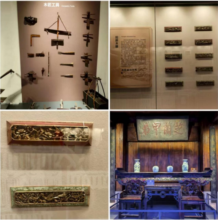 三楼的文化习俗展区,宛如一个五彩斑斓的民俗梦幻大观园,处处洋溢着生活的烟火气和文化的独特韵味。布贴、木雕、生活用品等展品琳琅满目,让人目不暇接。然而,最吸引我们目光的,当属那一件件精美的木雕作品。