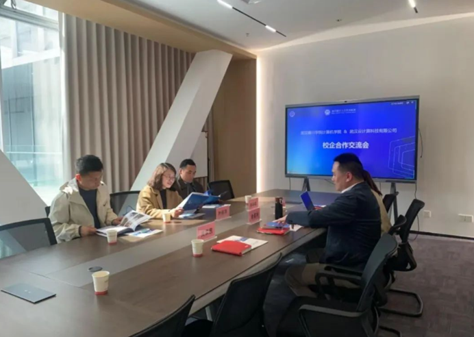 参观结束后,学院与武汉云计算科技有限公司举行了深入的交流座谈会。座谈会上,学院领导首先介绍了学院的专业设置、人才培养特色以及近年来在学科建设、科研创新等方面取得的成果。公司负责人对学院一行的到来表示热烈欢迎,并详细介绍了公司的发展历程、业务布局、人才需求以及未来发展规划。