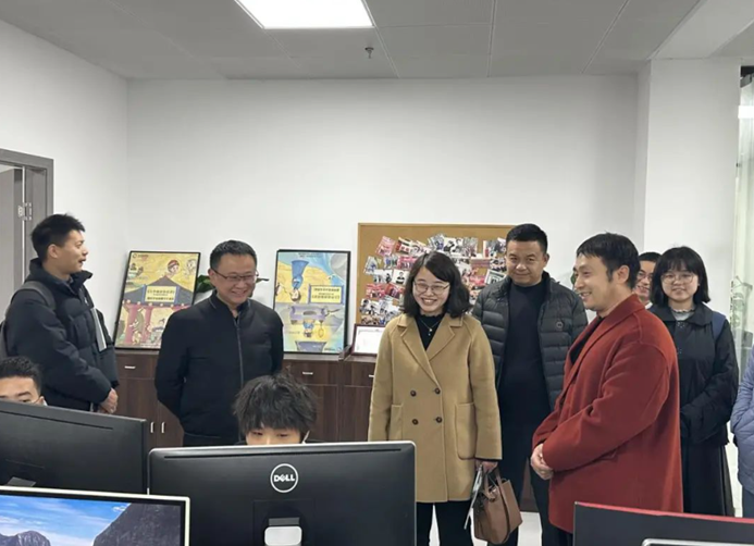 在子序科技总经理李攀带领下,学院一行参观了子序科技的研发部门,该公司通过视觉技术重构利用数据可视化、虚拟现实等技术,将静态产品演绎动态叙事,让抽象概念焕发数字生命。