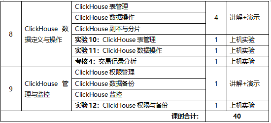 本课程是本专业的核心课程之一,主要培养学生对大数据数据管理系统的理解,多种数据管理系统的使用与相互结合的能力。内容包括:HBase列式数据库简介;HBase数据库架构;HBase集群管理;Elasticsearch基础;Elasticsearch常规操作;ClickHouse联机分析数据库;ClickHouse数据定义与操作;ClickHouse管理与监控。