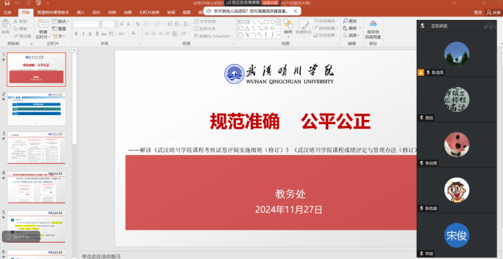 大数据系和人工智能系的考前动员会议同样聚焦于考场与阅卷规范。谢倩老师在会上指出,教师们要以严谨负责的态度对待考试工作,确保考试的严肃性和公正性。她详细解读了学院的考试制度与流程,强调教师在监考过程中要严格按照规定执行,杜绝任何违纪行为的发生。在阅卷环节,李珊枝老师强调,教师们要统一评分标准,做到给分有理、扣分有据,为学生提供一个公平的评价体系。他还要求教师们通过学生的答题情况,发现教学中存在的问题,为今后的教学改进提供参考。