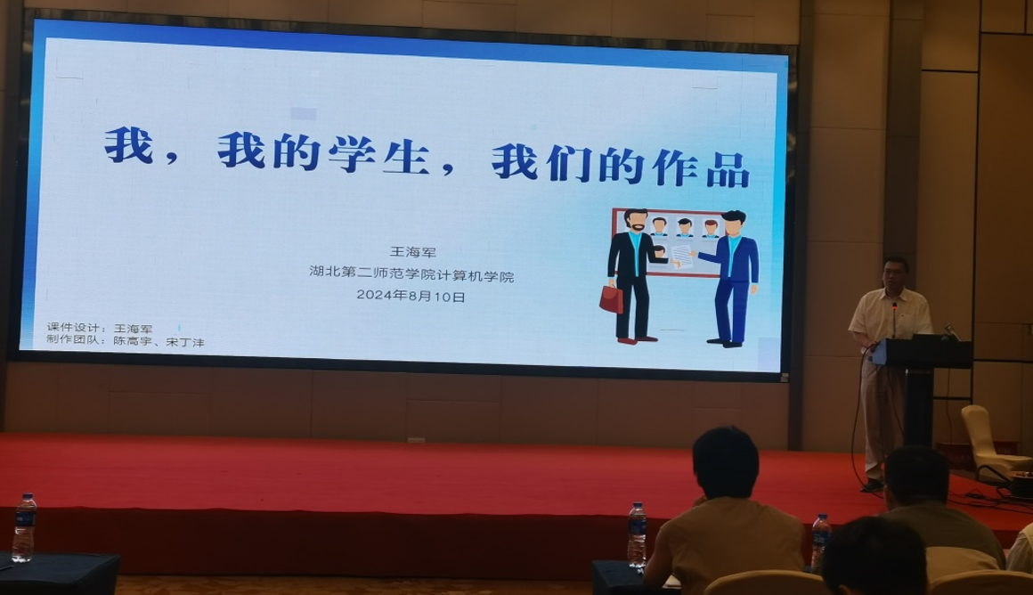 湖北第二师范学院王海军教授以“我,我的学生,我们的作品——如何搞好学科竞赛”为题进行讲授,首先强调了学科竞赛对于提升学生综合素质、激发创新思维的重要作用。他指出:“学科竞赛不仅是知识的比拼,更是能力的展现和团队协作的考验。通过参与竞赛,学生们能够更快地将理论知识转化为实践能力,同时培养解决复杂问题的能力和创新思维。”