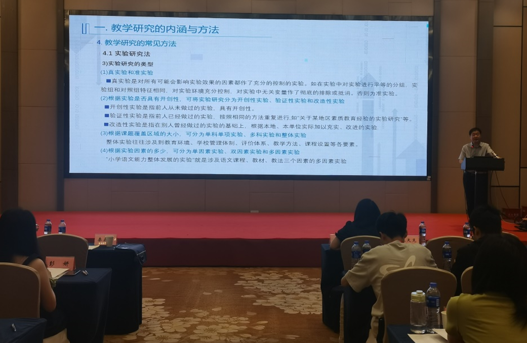 随后,秦教授详细讲解了教学研究的基本方法,包括实验研究法、文献综述法、分析法、比较法、案例研究法、调查研究法等,并强调了每种方法的适用场景与操作要点。他鼓励教师们结合自身教学实际,灵活运用这些方法,开展有针对性的教学研究,形成具有个人特色和实践价值的研究成果。