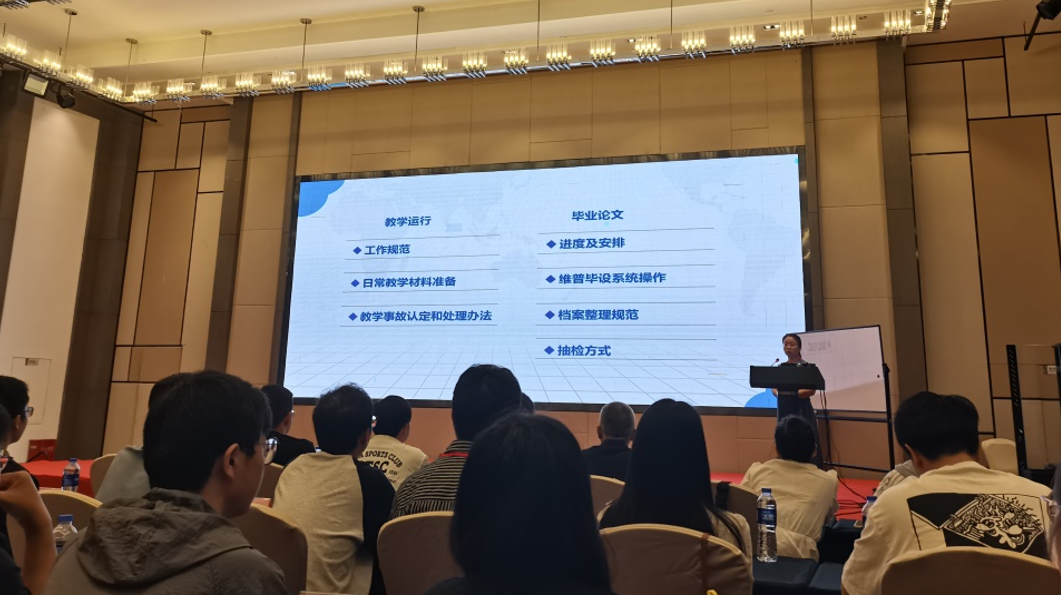 授课示范结束后,学院召开了专题会议,教学副院长裴浪围绕教学运行和毕业论文两大块进行培训,对最新的教师教育教学工作规范和课堂教学与管理规定进行了全面而深入的解读。内容涵盖了教案编写、讲稿准备、PPT制作及大纲设计等多个方面,详细阐述了各项要求与标准,旨在帮助教师们更加清晰地理解并遵循教学规范,提升课堂教学的有效性和吸引力。同时,针对教学事故相关文件的学习,强调了教学纪律的重要性,要求全体教师严格遵守教学规章制度,确保教学工作的顺利进行。