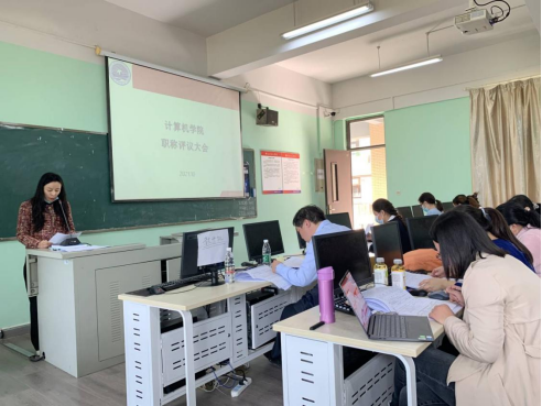 会议由2021年计算机学院职称评审工作小组组长主持。办公室主任田婷婷首先就学院2021年职称评审申报情况作了报告。经过教师自主申报,材料集中公示等环节,确保今年的职称评审工作做到公平公正、规范有序。