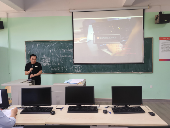 活动中,三位新进教师依次上台进行模拟讲课。他们通过模拟讲课,运用课件、图片等教具,达成教学目标。大数据系教师訚鹏展示的是《大数据处理平台与Hadoop》,公共基础课部教师李艳和李幼军的讲课内容分别是《关系代数》和《swift函数及调用》。三位教师教态大方,环节设计完整,教学过程有层次、有梯度,较好地突破了教学重难点。