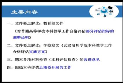本次会议进一步明确了学院下一阶段评建工作的任务,对拓宽评建工作思路,推进内涵发展,提高人才培养质量具有重要意义。