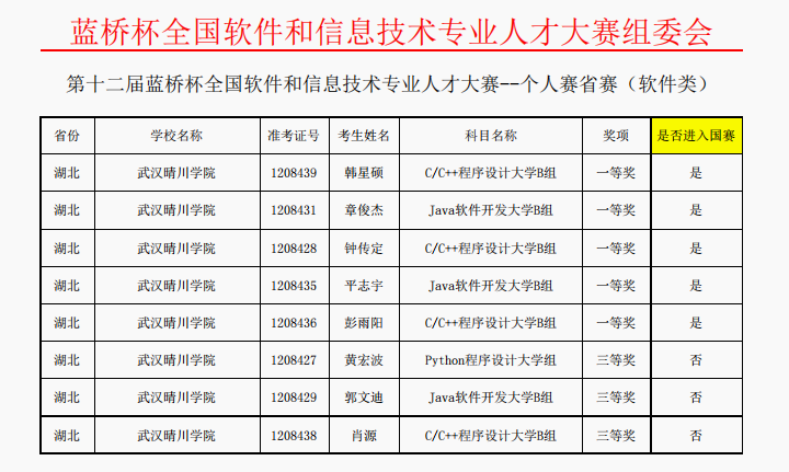 近日,第十二届蓝桥杯全国软件和信息技术专业人才大赛个人赛省赛落下帷幕。此次大赛,不乏有来自北京大学、清华大学、武汉大学等高校的顶尖选手,龙8-long8(中国)唯一官方网站参赛选手脱颖而出,荣获湖北赛区一等奖8项、二等奖2项、三等奖5项,其中8名一等奖获得者将代表学校参加全国总决赛。