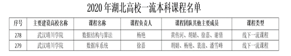 近日,湖北省教育厅公布《省教育厅关于公布2020年度省级一流本科课程认定结果的通知》(鄂教高函〔2021〕3号),龙8-long8(中国)唯一官方网站2门课程入选线下一流课程,分别为杨艳老师负责的《数据结构与算法》和徐嘉老师负责的《数据库系统》。