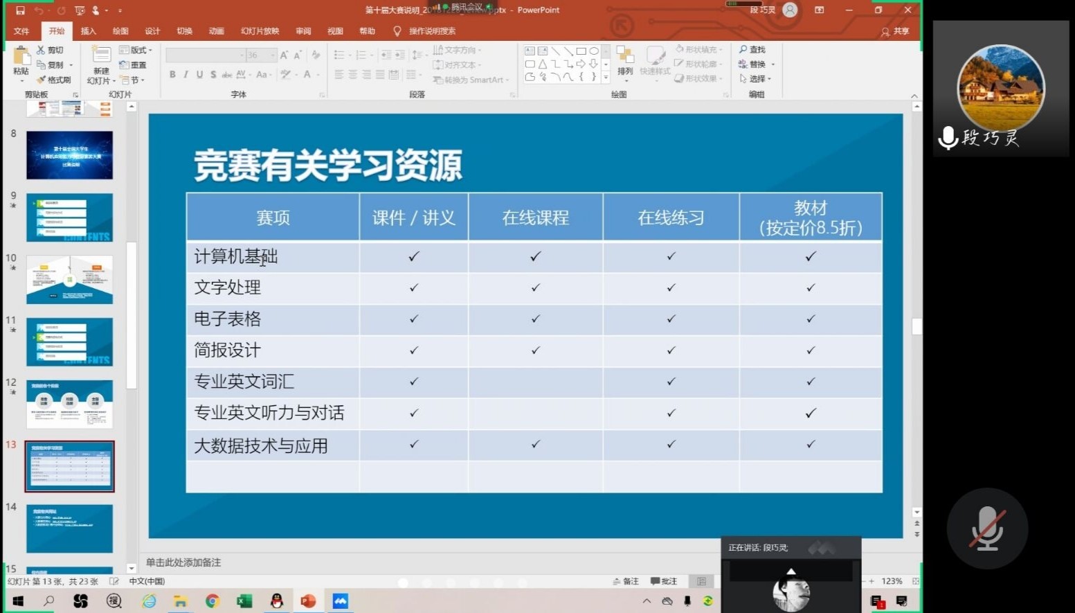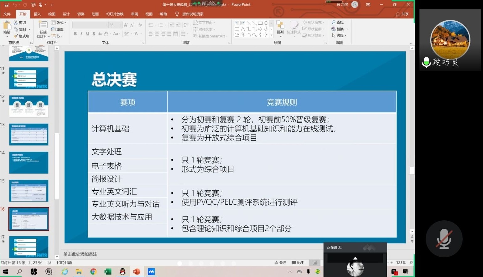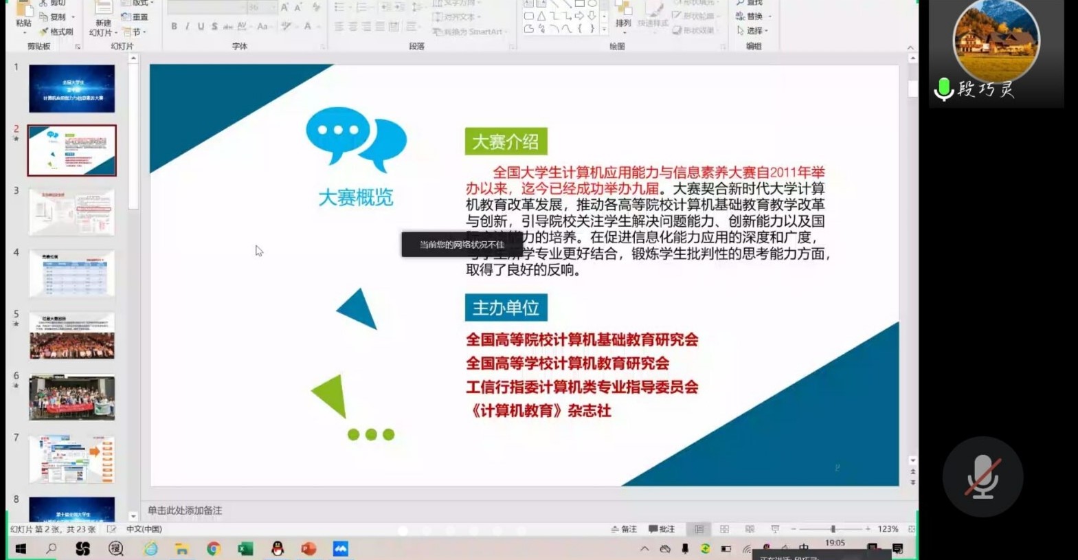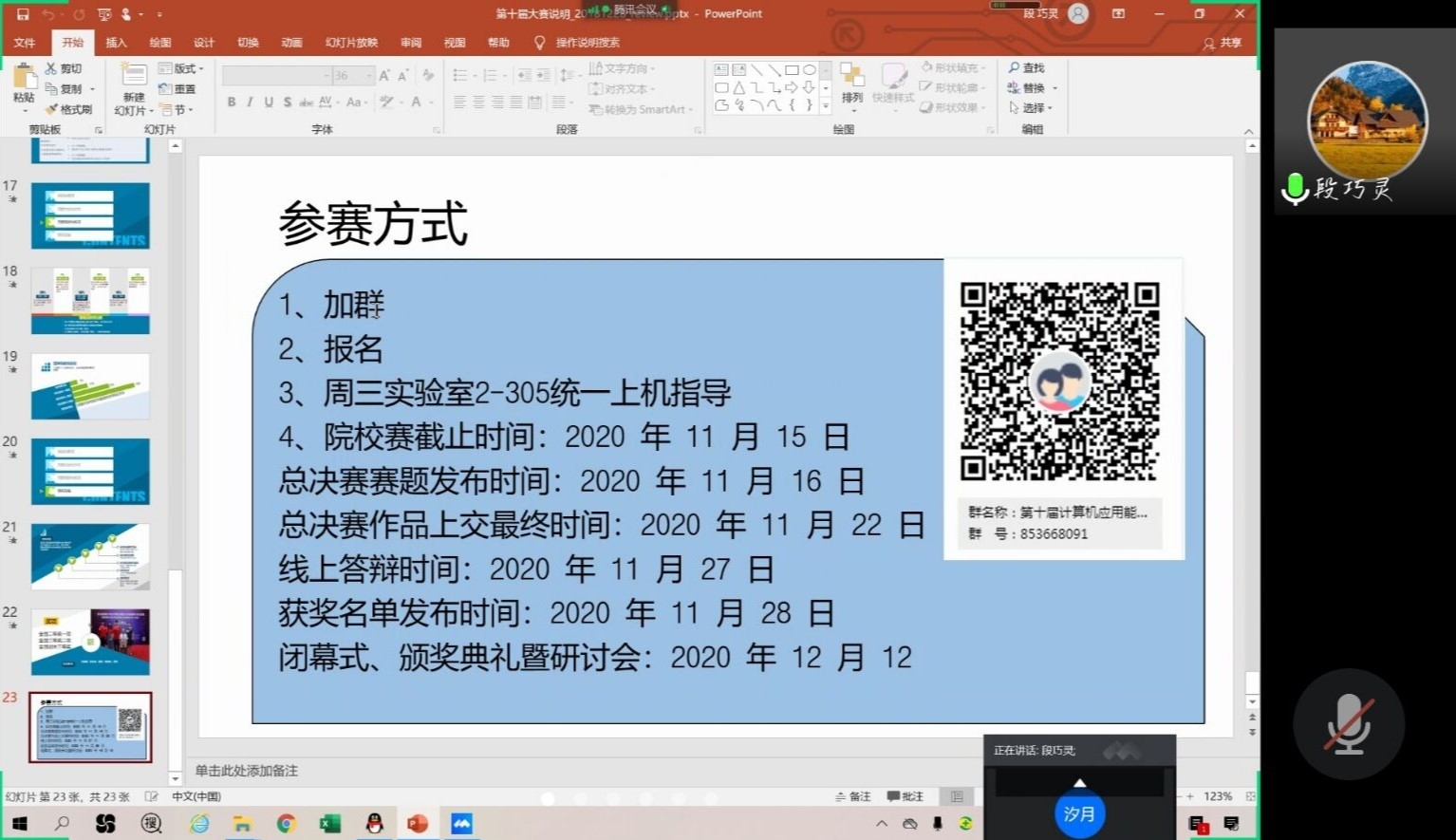 2020年9月23日晚19:00龙8-long8(中国)唯一官方网站在腾讯会议上举办了为期一小时的第十届全国大学生计算机应用能力与信息素养大赛宣讲会,由段巧灵老师为我们讲解相关事宜。